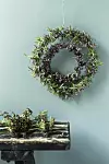 4. Gör en bukett bestående av 4–5 kvistar och bind fast dem vid kransen med blomstertråd.
