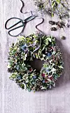 Bjud in både julen och vännerna med en vacker dörrkrans! Välj gärna vintergröna grenar och torkade blommor, så håller den sig fin hela helgen.