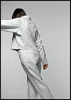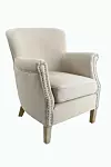 Fåtölj med nitdekoration och vitpigmenterade ben, tyg i linne och polyester, h 77 cm, br 66 cm, 2 299 kr, Ellos.