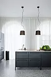 Det är inte nödvändigt att välja samma färg i hela köket. Överskåpen kan till exempel ha en färg, medan skåpen i köksön kan ha en annan. Svart är en spännande kontrastfärg till vita skåpluckor.