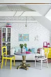 – Vi hade till exempel några gamla stolar som vi tröttnat på, men eftersom benen var väldigt snygga sågade vi av dem och satte på en hylla. Vips blev det en helt ny möbel.