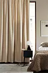 I sovrummet är det ofta fint med gardiner med mycket tyg, som ger ett dämpat och mysigt intryck. Här kan det vara en bra idé att välja en upphängning som går från vägg till vägg och gardiner som går från golv till tak för att minska ljusinsläppen från sidan. Eventuellt kan du fodra gardinerna med mörkläggande tyg eller välja ett sådant tyg till själva gardinen.