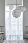 Vik gärna nederfållen dubbelt så får du ett vackert fall i tyget. Du kan även sy in ett tyngdband längst ner i gardinen, men det kan vara svårt att få det snyggt om tyget är tunt.