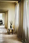 Om du har ett rum med lågt i tak och grova fönsterkarmar passar det fint med långa gardiner som förstärker en känsla av höjd i rummet.