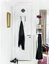 Den här dörren hade en masonitskiva spikad på dörramen, men förvandlades till spegeldörr med några enkla grepp. Om man redan har en spegeldörr till garderoben kan man förhöja känslan med en gjutjärnsventil, gammalt dörrhandtag och dubbelkrokar. Allt från Qvesarum.
