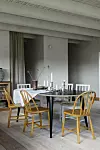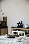 När det dukas upp till måltid är det med keramik och linne i naturnära nyanser.