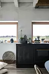 Med miljöfokus och innovativa idéer har Pontus Westerström skapat ett drömkök i sitt nybyggda stenhus i Brantevik på Österlen. Som del i en öppen planlösning är köket uppenbart utformat för att smälta in. Med sin enda sektion, där vitvaror, skåp, diskbänk och arbetsyta är samlade, ter sig köket som en del av möblemanget vilket skapar en lugn och behaglig känsla.