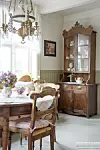 Gardiner är ett måste i äldre hus, liksom tavlor. Även om det känns svårt att spika hål i en ny fin tapet blir det väldigt mycket trivsammare med tavlor.