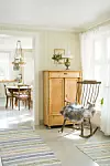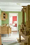 Här är den lindblomsgröna färgen starkare och vävstolen ger karaktär till rummet.