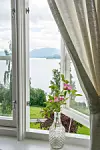 Vaser i pressat glas passar stilen bra och vad kan ge mer känsla en ett fönster på glänt mot sommarlandskapet?