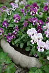 Det lila och vita går igen även i planteringen med penséer. Krukan är köpt i den lilla trädgårdsbutiken Ekbacken 939 i Lomma.