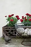 På ett gammalt symaskinsbord står ett stilleben i gjutjärn. Den rostiga planteringslådan i järn är köpt i Lunds Trädgårdsbutik, f.d. Lilla Fiskaregatans trädgårdsbutik.