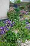 Blomsteröar av akleja i det ljusa gruset. Vilt och vackert på samma gång.