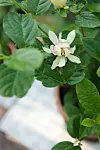 Kryddbusken, Calycanthus floridus ´Venus´ får stora vackra blommor med fruktig doft.