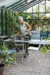 Växthuset är ett Classicum Helios Victorian, 14,2 kvm. Citronen trivs här och ger frukt i flera omgångar under året.