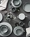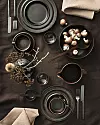 "Med dukning i färgen Åska får du en mörkgrå inramning på middagsbordet. Detta samsas med ljusare grått porslin och svarta inslag för att skapa en sober och elegant look."