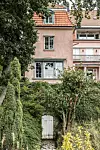 Den rosaputsade patriciervillan ligger inbäddad i grönska och var bostad åt en välbärgad redar-familj under 1900-talets första hälft.