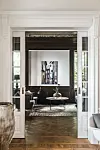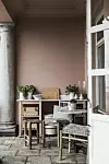 Den pampiga villan utanför Helsingborg, med sin rosa stilfulla fasad och brutna takresning, rymmer i dag fyra bostäder. Susannes och Christians lägenhet, som ligger i entréplanet, består av tre rum och kök med tillhörande stor terrass. Sedan paret köpte bostaden har de ändrat om hela planlösningen och hemmet har genomgått en varsam renovering, med stor respekt för husets historia.