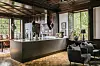 Ett väggparti revs vilket möjliggjorde såväl vackert ljusinsläpp som fin utsikt från alla rum i bostaden. Köket från HTH är placerat i vinkel, och de mörka luckorna harmonierar med väggpanelen i ädelträ. Fläkt, Fjäråskupan.