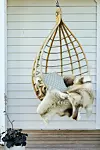 I hängstolen från Broste Copenhagen ligger mjuka och värmande skinnfällar. Kruka från Royal Design.