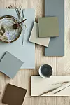 Gör ett moodboard med hjälp av färgprover, tapet och färger från inredningen för att lättare se hur färgerna kommer att passa ihop.