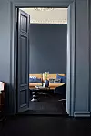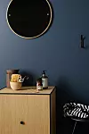 Komplementfärger hos Alcro. På väggen syns kulören Havsdjup.