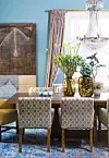 Matsalsmöblerna fanns redan i huset, men stolarna kläddes om i nytt tyg.