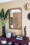 Antikviteter och arvegods tillför djup till inredningen. Här samsas ett halvmånebord och en förgylld spegel från 1800-talet med modern, abstrakt konst.