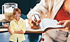 1. Klipp tyget efter innerkuddens mått och klipp ev bakstycket enligt tipset till höger. Om du vill ha schablonmönstret på en avvikande bit tyg, som enligt bilden, klipp även ut den. Till den kudden med stjärna på jeanstyg, klipptes jeanstyget 25x25 cm till en kudde med måttet 50x50 cm. Kudden med en röd rand på mitten, klipptes det röda tyget 20x50 cm till en kudde med måttet 50x50cm.