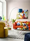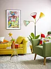 Blanda starka färger och olika material i en härlig mix. Våga även satsa på möbler i klara färger, det piggar upp.