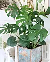 Monstera bidrar till en djungelliknande inomhusmiljö. Den klarar av att stå i lätt skugga. Vattna regelbundet men se till att jorden hinner torka upp mellan vattningarna.