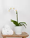 Orkidéer är en tropisk växt som älskar hög luftfuktighet. Vattna när rötterna har hunnit torka upp helt så att den inte ruttnar. Undvik att ställa din orkidé över eller nära element då den luften blir för torr där.