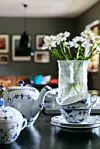 På en hylla samsas en samling Stig Lindberg-keramik med ett par Alvar Aalto-vaser. I matrummet står två Bumling golvlampor på varsin sida om ett rustikt gammalt linneskåp och kaffet serveras i Kunglig Dansk Musselmalet-porslin. I kartongerna förvarades inte bara Berits efterlämnade skatter utan också ting som en gång tillhört mormor Astrid.