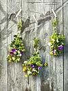 • Fäst blommorna med blomstertråd eller tunn ståltråd, varva de olika sorterna jämnt. Var noga med att fästa blommor på både baksida och framsida om du vill ha en rund krans.