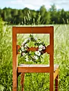 Samla trädgårdens alla doftande försommarblommor i en krans – nyponros, schersmin, honungsros, fjädernejlika och oregano. Fint att hänga på varje stol på sommarfesten.