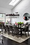 Innanför spisen, mellan matsal och kök ligger ett kylrum för viner.