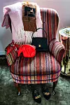 Sovrummet har en walk in closet. Den klassiska lilla fåtöljen har klätts i tyg från Missoni, mohairpläd, Stackelbergs, sideboard i mässing från Cardell. Den lilla väskan i form av en elefant kommer från Loewe.