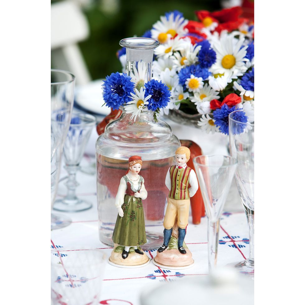 Midsommarskålen Rhapsody med ett dansande par, värde 150 kr. Den stora skålen med midsommarblomster heter Ulla. Värde 350 kr.