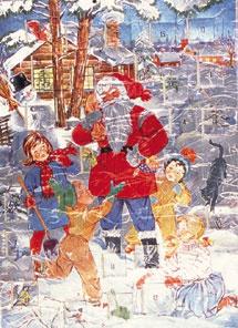 – Jag var ju barn på 50-talet och vi hade varken TV eller annat. Kalendrarna var nog för mig, vad ett riktigt bra barnprogram är för barn idag. De blev ju ett samtalsämne i skolan också, minns Birgitta och plockar fram sin absoluta favoritkalender. Den är från 1953, har en glansig yta och föreställer en tomte och några rödkindade barn som leker ute i snön.