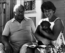 Harald och Christina wiberg på Gladhammar i mitten av 1970-talet. Taxen heter Tussan.