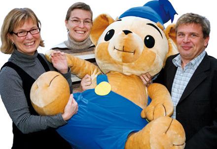 Lisbeth Wremby, chefredaktör på tidningen Bamse, Lena Pålsson, initiativtagare till Bamseskolan på Sri Lanka och Ola Andréasson, son till Bamses skapare, jublar över att Bamses godhet nu når ut över världen.