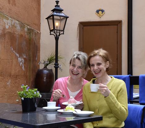 Fnissiga systrar med prinsessbakelser. Skådespelerskorna Stina och Ylva Ekblad njuter ofta av långa konditoribesök.