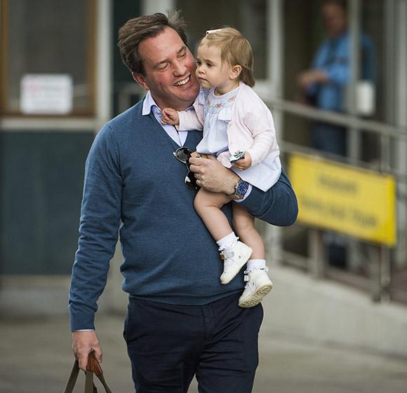 Som en helt vanlig pappa. Eller kanske inte riktigt… Chris lastar in i prinsessan Leonores barnvagn efter att de besökt Madeleine och familjens nytillskott Nicolas på Danderyds sjukhus.