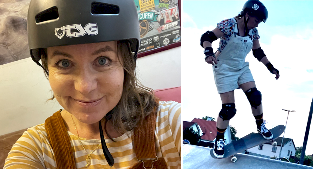 Malin är en rätt äventyrlig person. Hon har haft en radda av roliga hobbies, åkt snowboard, kört motorcykel, sjungit i rockband och brottats innan hon som 45-årig ”tant” fastnade för skateboard.