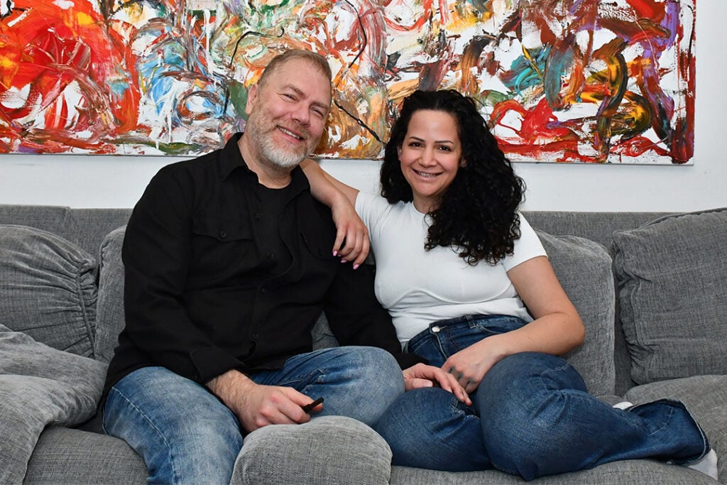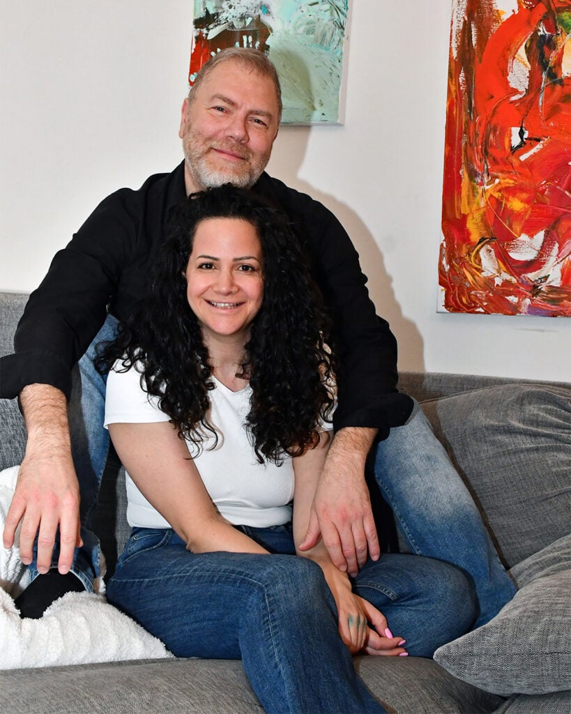 Suzanne, som varit med under stora delar av intervjun, ler mot Tony.