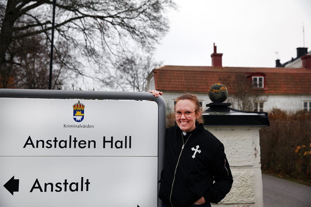 På anstalten Hall i Södertälje sitter just nu Sveriges grövsta brottslingar i säkerhetsklass 1. Som fängelsepräst kommer Hanna Backman hit två dagar i veckan och en dag varannan vecka besöker hon SIS-hemmet i Tysslinge. Annars jobbar hon sedan fyra år tillbaka som präst i Alla Helgons kyrka. Hanna tvekar inte en sekund på frågan om hon trivs bäst med att hålla i dop, begravningar och gudstjänster i kyrkan eller att sitta och samtala med de interna på Hall.