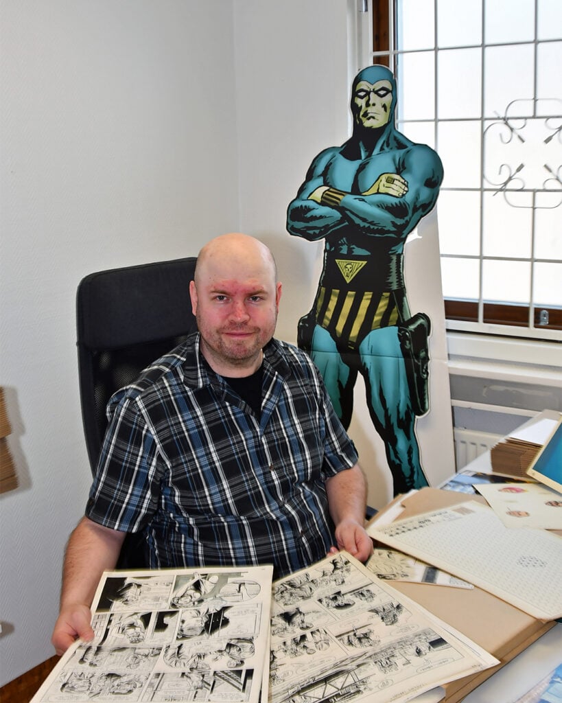 – Det första svenska numret kom den 5:e oktober 1950, men karaktären som skapades av Lee Falk 1936 började gå i morgontidningar i USA redan 1936. Nästa år fyller karaktären Fantomen alltså 90 år, men han är fortfarande lika pigg och vital i sin blå dräkt, berättar Andreas.