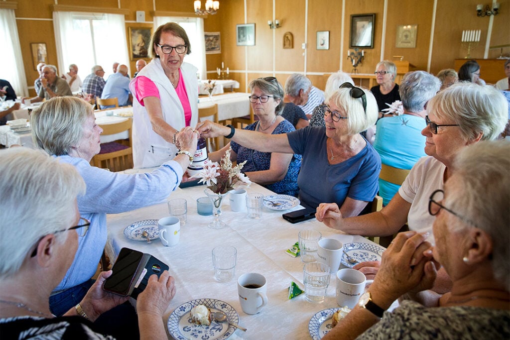 – Snack och gemenskap är minst lika viktigt som att gå. Och fikastunden efteråt är härlig. Då koser vi oss, säger Toril Nilsson som flyttade till Sverige från Norge för snart 60 år sedan.
