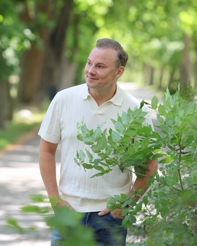 Han berättar att varken han eller Mats har gröna fingrar ännu, men att de kanske är på väg att få. Trädgård och inredning är nämligen något han gärna sysselsätter sig med när han är ledig och inte står på scen, vilket i och för sig är något han gör ganska många dagar om året.