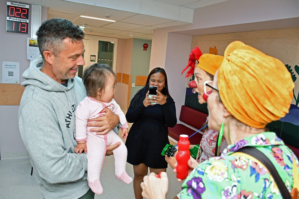– Det är första gången jag träffar på sjukhusclownerna. Det är bra att de finns. Jag ser att Adalia slappnar av när hon ser dem, säger Per Magnusson.